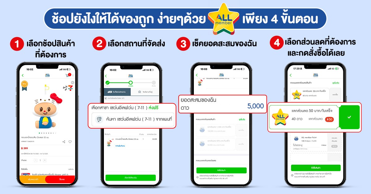 เริ่มกันที่ สำหรับลูกค้าใหม่ ใครเพิ่งสมัคร ALL member บอกเลยว่ามีของขวัญต้อนรับ! แค่สะสมดาวให้ครบ 5 ดาว ก็สามารถนำไปแลกรับ ส่วนลด 15 บาท ได้ทันที เหมาะมากกับคนที่อยากลองช้อปครั้งแรกแบบสบายกระเป๋า ได้ทั้งของ ได้ทั้งความคุ้มแบบไม่ต้องคิดเยอะ เหมือนมีชินจังมายื่นคูปองให้ถึงมือเลยทีเดียว