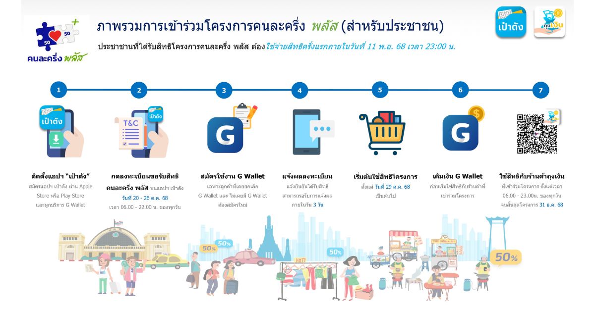 ประชาชนที่ได้รับสิทธิโครงการคนละครึ่ง พลัส ต้องใช้จ่ายสิทธิครั้งแรกภายในวันที่ 11 พ.ย. 2568 เวลา 23.00 น.