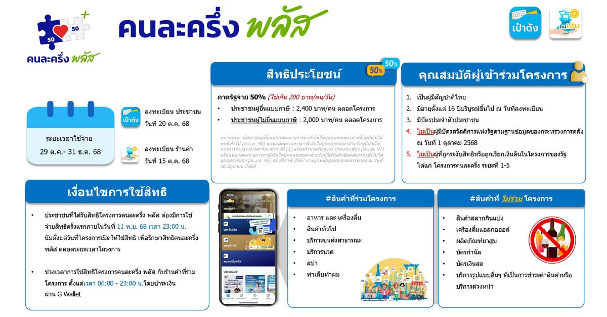 ลงทะเบียนคนละครึ่งพลัส 2568 สิทธิประโยชน์ และเงื่อนไขการใช้สิทธิ