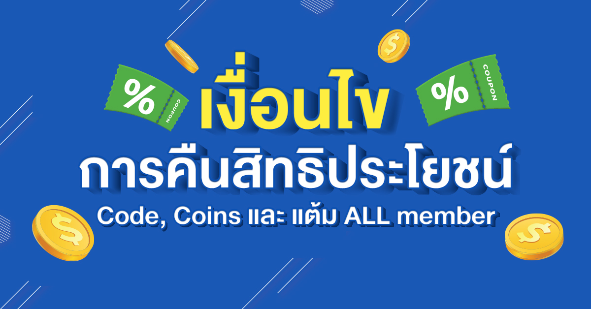 เงื่อนไขการคืนสิทธิประโยชน์ Code, Coins, แต้ม ALL member