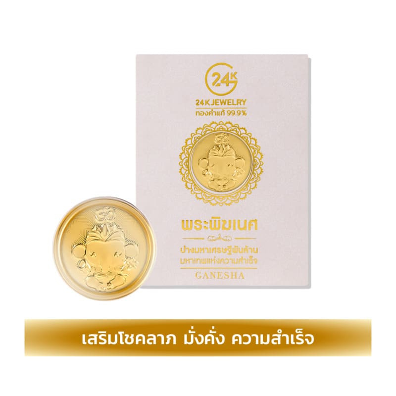 วัตถุมงคลตัวแรก “แผ่นทองคำมงคล พระพิฆเนศ ปางมหาเศรษฐีพันล้าน” วัตถุมงคลสุดปังที่สายมูไม่ควรพลาด! เชื่อกันว่าท่านคือเทพแห่งความสำเร็จและขจัดอุปสรรค ช่วยเสริมดวง เสริมเฮง และดึงดูดทรัพย์ให้ชีวิตเต็มไปด้วยความมั่งคั่งและสิริมงคล เงินทองหลั่งไหลเข้ามาไม่ขาดสายเลยค่ะ
