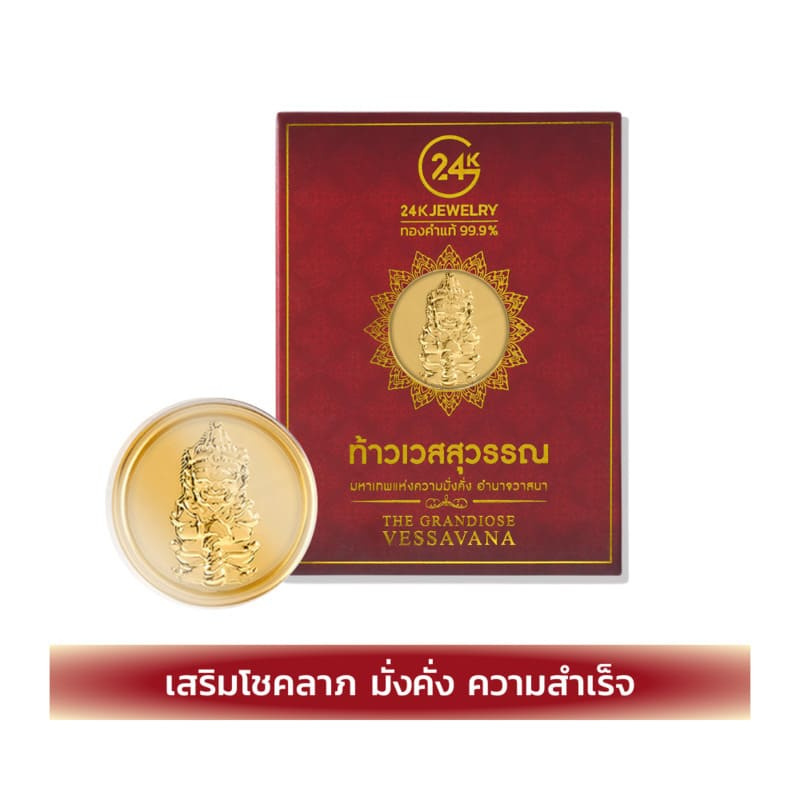 วัตถุมงคลตัวที่สอง “แผ่นทองคำมงคล ท้าวเวสสุวรรณ มหาเทพแห่งความมั่งคั่ง อำนาจวาสนา” ของมงคลสุดฮิต! ที่เต็มไปด้วยพลังแห่งความศรัทธาและความรุ่งเรือง โดยส่วนใหญ่คนเชื่อว่าท้าวเวสสุวรรณถือเป็นเทพผู้ปกป้องจากสิ่งชั่วร้าย และยังดึงดูดโชคลาภ ความมั่งคั่งให้เข้ามาในชีวิตอีกด้วยนะ