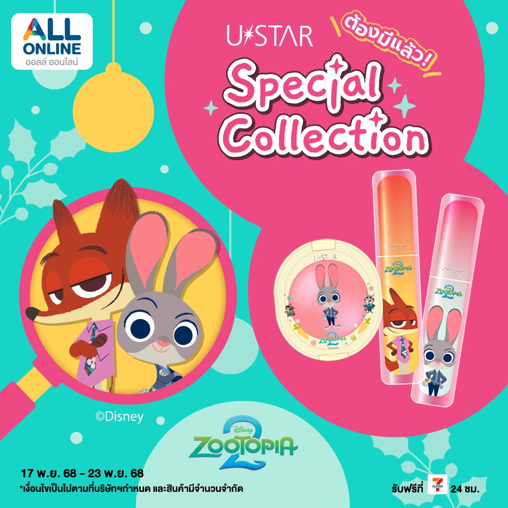 คอล Ustar X Zootopia น่ารักจนอยากเก็บทุกชิ้น บอกเลยว่าหมดไวมาก! สามารถช้อปออนไลน์ง่าย ๆ ได้ที่ ALL ONLINE พร้อมส่งตรงถึงบ้าน สะดวก รวดเร็ว ไม่ต้องไปต่อคิวในร้าน ใครชอบคอลเลกชันดิสนีย์ น่ารักสดใส ใช้ง่าย และให้ฟินิชผิวสวยแบบปังมาก ๆ ห้ามพลาดคอลนี้เด็ดขาด ของต้องมีจริง ๆ แม่!