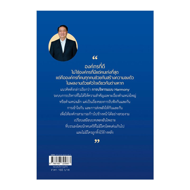 แนวคิดสำคัญของหนังสือเล่มนี้คือ “Harmony Management” หรือ “การบริหารแบบกลมกลืน” ระบบการบริหารที่ไม่ได้ให้ความสำคัญเฉพาะเรื่องตำแหน่งใหญ่ หรือตำแหน่งเล็ก แต่เป็นเรื่องของการรับฟังกันและกัน พร้อมให้คุณค่ากับ “ความเข้าใจซึ่งกันและกัน” มากกว่าการแข่งขันภายในองค์กร เพราะในความเป็นจริงแล้ว ธุรกิจจะยั่งยืนได้ ก็ต่อเมื่อทุกคนในองค์กรรู้สึกว่าตัวเองมีคุณค่า และพร้อมช่วยกันขับเคลื่อนไปในทิศทางเดียวกัน
