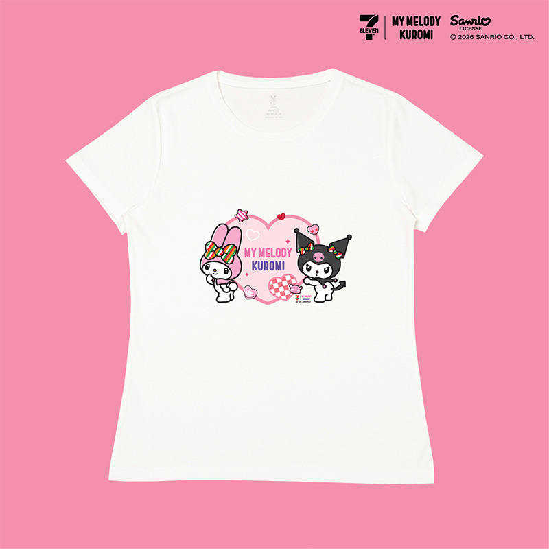M2S Lifestyle เสื้อยืด ลายลิขสิทธิ์ มายเมโลดี้และคุโรมิ สีขาว ลายหัวใจ 1