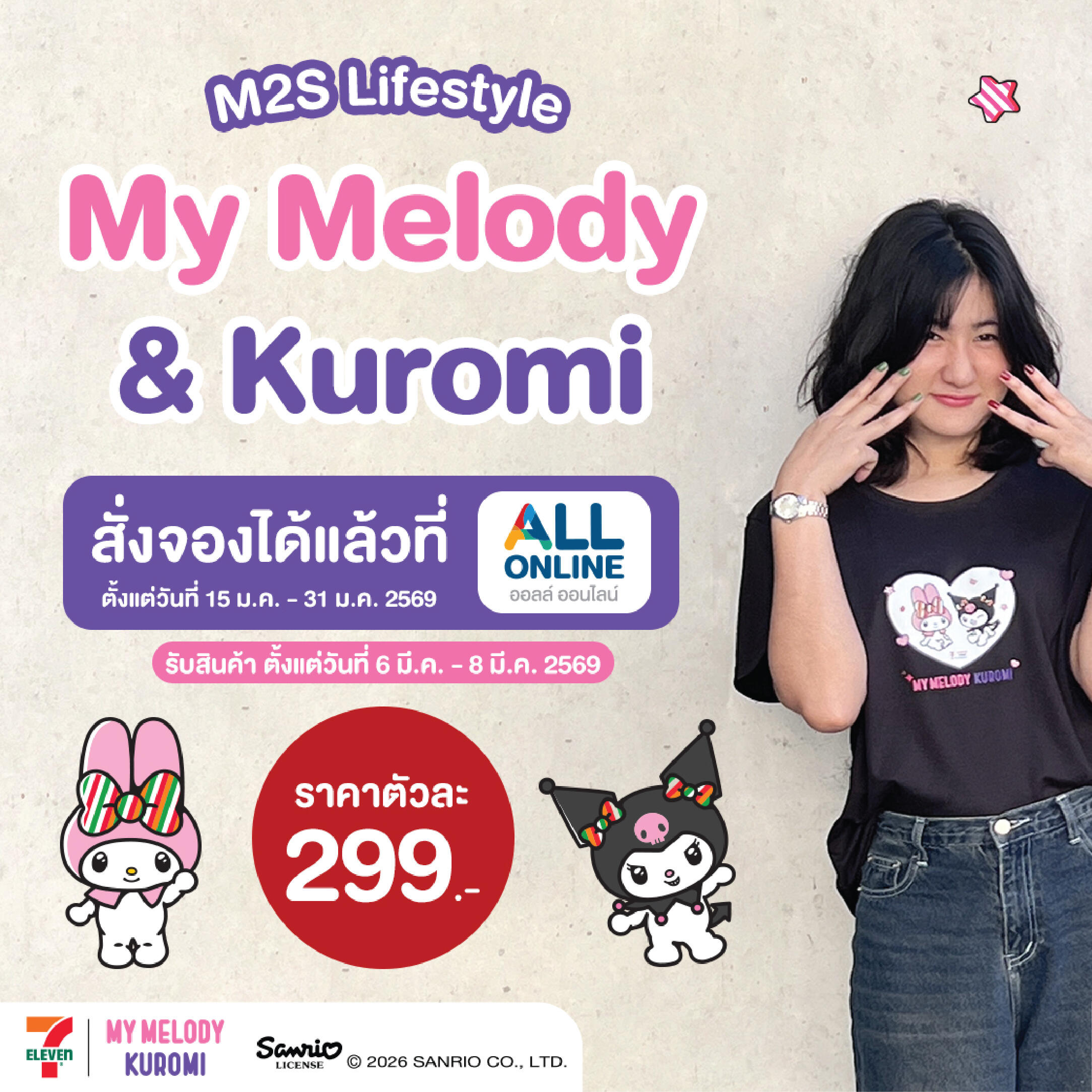 “เสื้อมายเมโลดี้และคุโรมิ” จาก M2S ใส่แล้วได้ฟีลทั้งน่ารัก สดใสแบบมายเมโลดี้ แต่ก็มีความซนๆ แบบคุโรมิอยู่ในตัว มาจับจองความน่ารักแบบนี้ได้ตั้งแต่วันนี้ – 31 มกราคม 2569 เฉพาะที่ ALL ONLINE เท่านั้นน้า