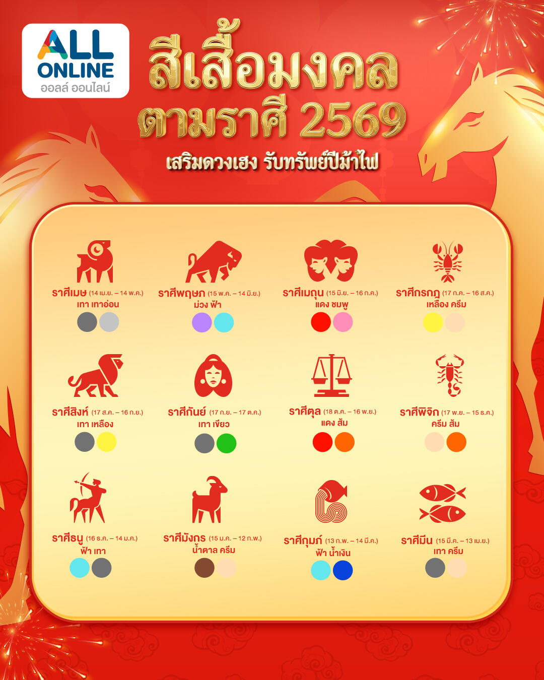 เสื้อสีมงคลตามราศี 2569  เสริมดวงเฮง รับทรัพย์ปีม้าไฟ