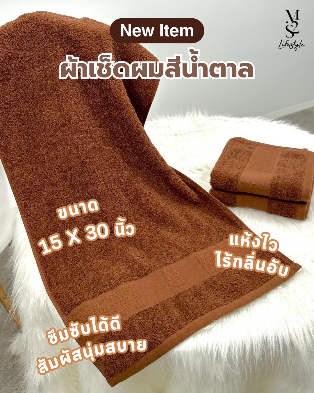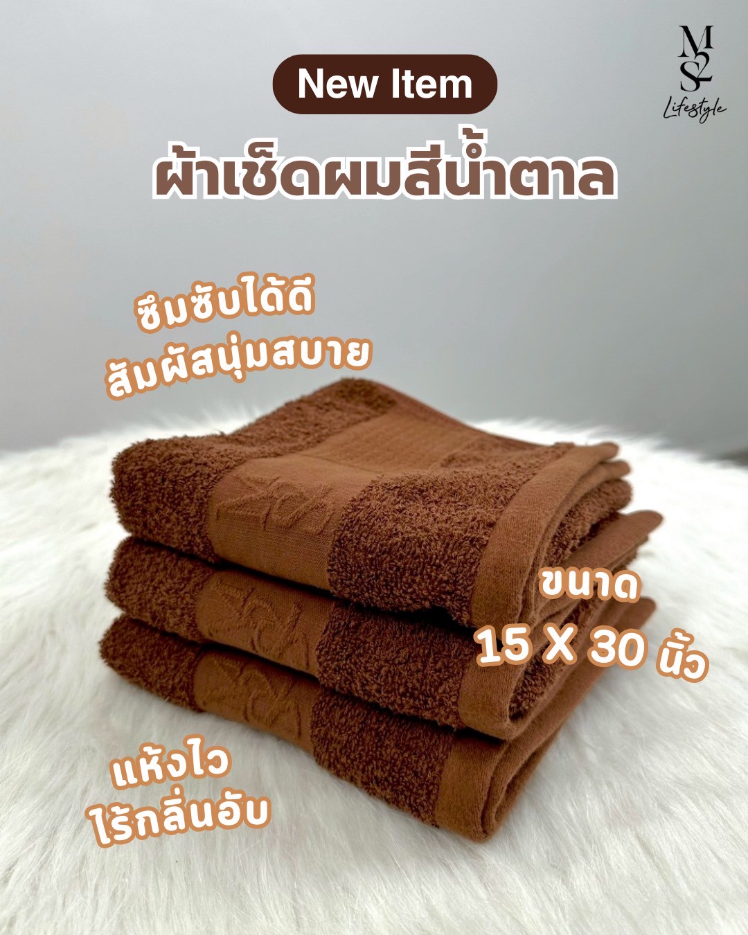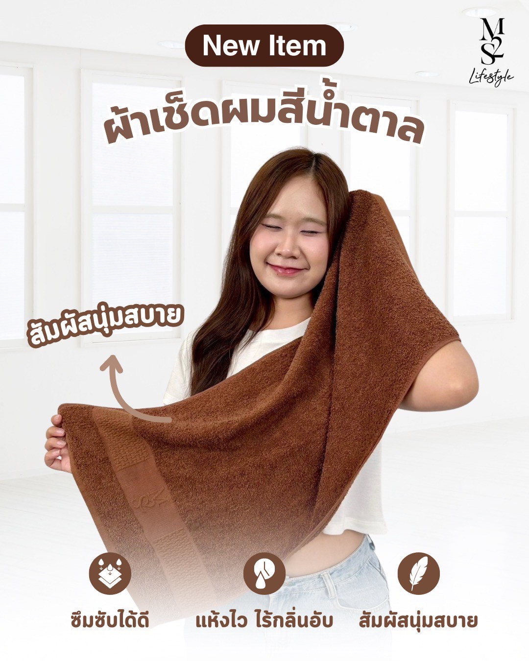 วันนี้ขอแนะนำ ผ้าเช็ดผม M2S สีใหม่ “สีน้ำตาล” โทนอบอุ่น เรียบหรู ใช้ง่าย เข้ากับทุกไลฟ์สไตล์ พร้อมคุณสมบัติที่ตอบโจทย์คนรักเส้นผม และสายช้อปออนไลน์ที่มองหาของดี มีคุณภาพ ใช้ได้นาน คุ้มค่าในทุกวัน