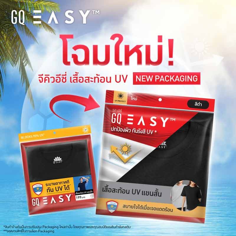 GQ Easy เสื้อยืด กัน UV เป็นอีกหนึ่งไอเทมที่เหมาะกับหน้าร้อนอย่างมาก จุดเด่นคือช่วยป้องกันรังสี UV พร้อมเนื้อผ้าที่ใส่สบาย ไม่หนัก ไม่อับ แม้ต้องออกแดดหรือทำกิจกรรมกลางแจ้งก็ยังรู้สึกคล่องตัว เหมาะกับทั้งวันทำงานและวันพักผ่อน ใส่ตัวเดียวก็ดูเรียบเท่ หรือจะใส่คู่กับกางเกงขาสั้นก็เข้ากันได้ดี