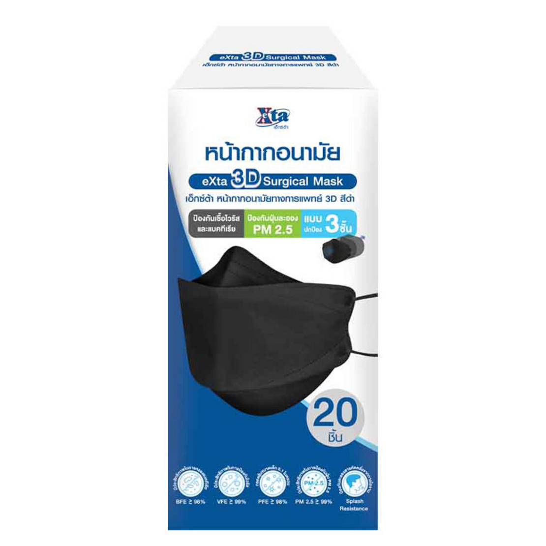 ถ้าคุณกำลังมองหา หน้ากากอนามัยที่ทั้งป้องกันได้ดี ใส่สบาย และดูดี ขอแนะนำ Extra Mask หน้ากากอนามัยทรง 3D สีดำ แบบกล่อง 20 ชิ้น ที่ตอบโจทย์ทุกไลฟ์สไตล์ ทั้งใช้งานประจำวัน ไปเรียน ไปทำงาน หรือออกงานก็เอาอยู่