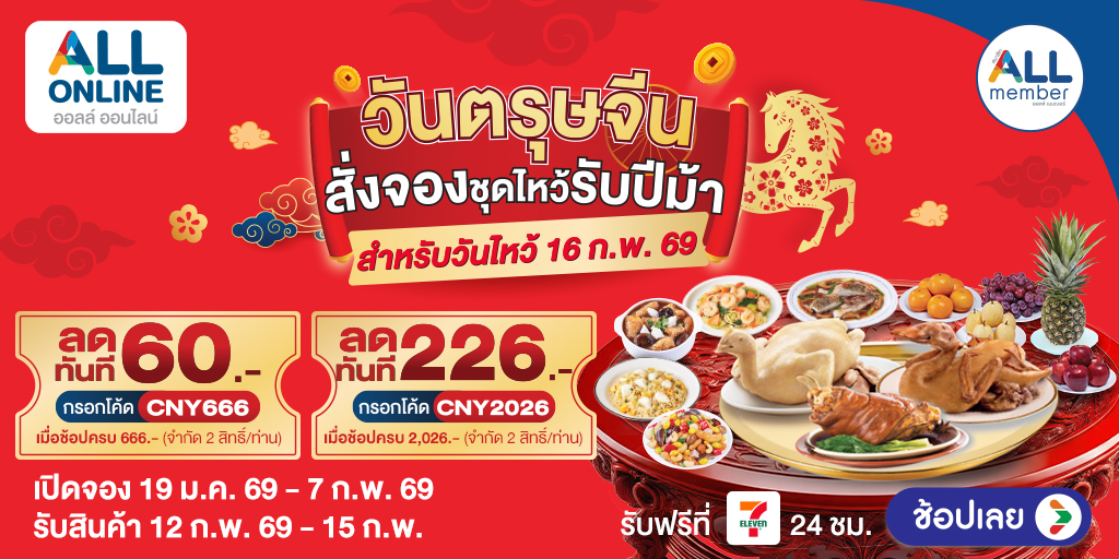 ตรุษจีนทั้งที จะปล่อยบ้านโล่งๆ ธรรมดาได้ยังไงล่ะ ปีมงคลแบบนี้ต้องจัดเต็มแบบ “เสริมเฮง เสริมปัง ดึงโชคเข้าบ้าน” กันหน่อย! ถ้าคุณกำลังมองหาไอเทมแต่งบ้านที่ช่วยเรียกสิริมงคลแบบทันใจ แถมยังหาซื้อได้ง่ายๆ ที่เว็บไซต์ ALL ONLINE บอกเลยว่ามาถูกทางแล้ว เพราะวันนี้เรารวมของแต่งบ้านเสริมมงคลที่ทั้งสวย ทั้งความหมายดี และทั้งบ้านต้องร้องว้าวมาให้เลือก เอาไปจัดปุ๊บ บ้านปังปั๊บแน่นอน
