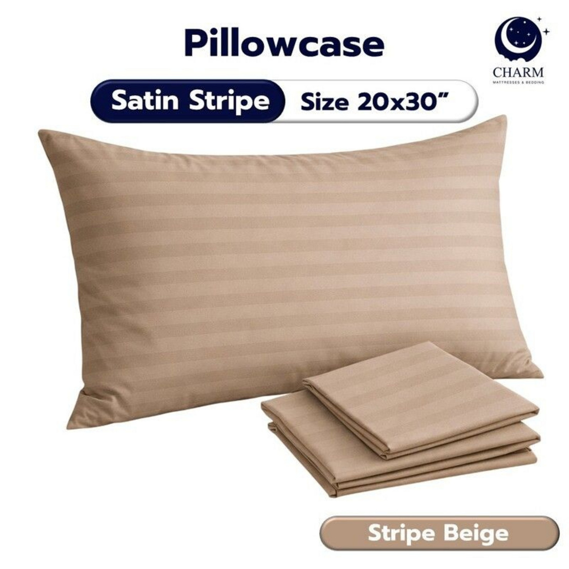 CHARM ปลอกหมอนหนุน ผ้าซาตินลายริ้ว