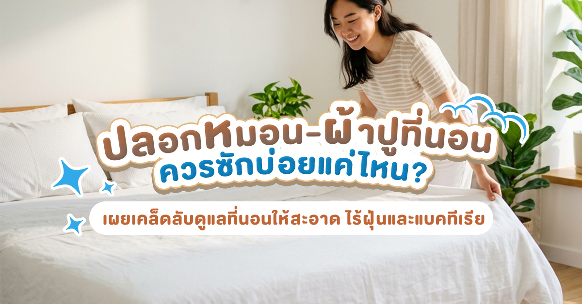 - กรณีพิเศษ: หากคุณเป็นคนเหงื่อออกง่าย, มีสิวอักเสบเยอะ, นอนกับสัตว์เลี้ยง หรือชอบนอนโดยไม่ล้างเครื่องสำอาง/ไม่อาบน้ำ แนะนำให้ซักทุกๆ 3-4 วัน โดยเฉพาะ “ปลอกหมอน” ที่ควรเปลี่ยนบ่อยกว่าผ้าปูที่นอนค่ะ