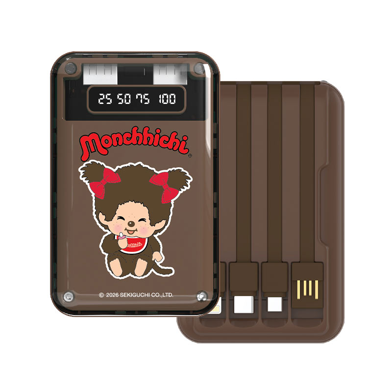 จุดเด่นคือมี สายชาร์จในตัวถึง 4 เส้น ทำให้สะดวกต่อการใช้งาน ไม่ต้องพกสายเพิ่มให้ยุ่งยาก อีกทั้งยังสามารถ นำขึ้นเครื่องบินได้ตามมาตรฐาน จึงเหมาะกับคนที่เดินทางบ่อย ตัวเครื่องมีให้เลือก 3 สี 3 ลาย ให้เลือกสะสมตามสไตล์ของแต่ละคน นอกจากความน่ารักแล้ว ยังตอบโจทย์เรื่องความสะดวกในการใช้งานได้เป็นอย่างดี ถือเป็น Gadget ที่ทั้งแฟน Monchhichi และคนที่ชอบอุปกรณ์น่ารักๆ ไม่ควรพลาด