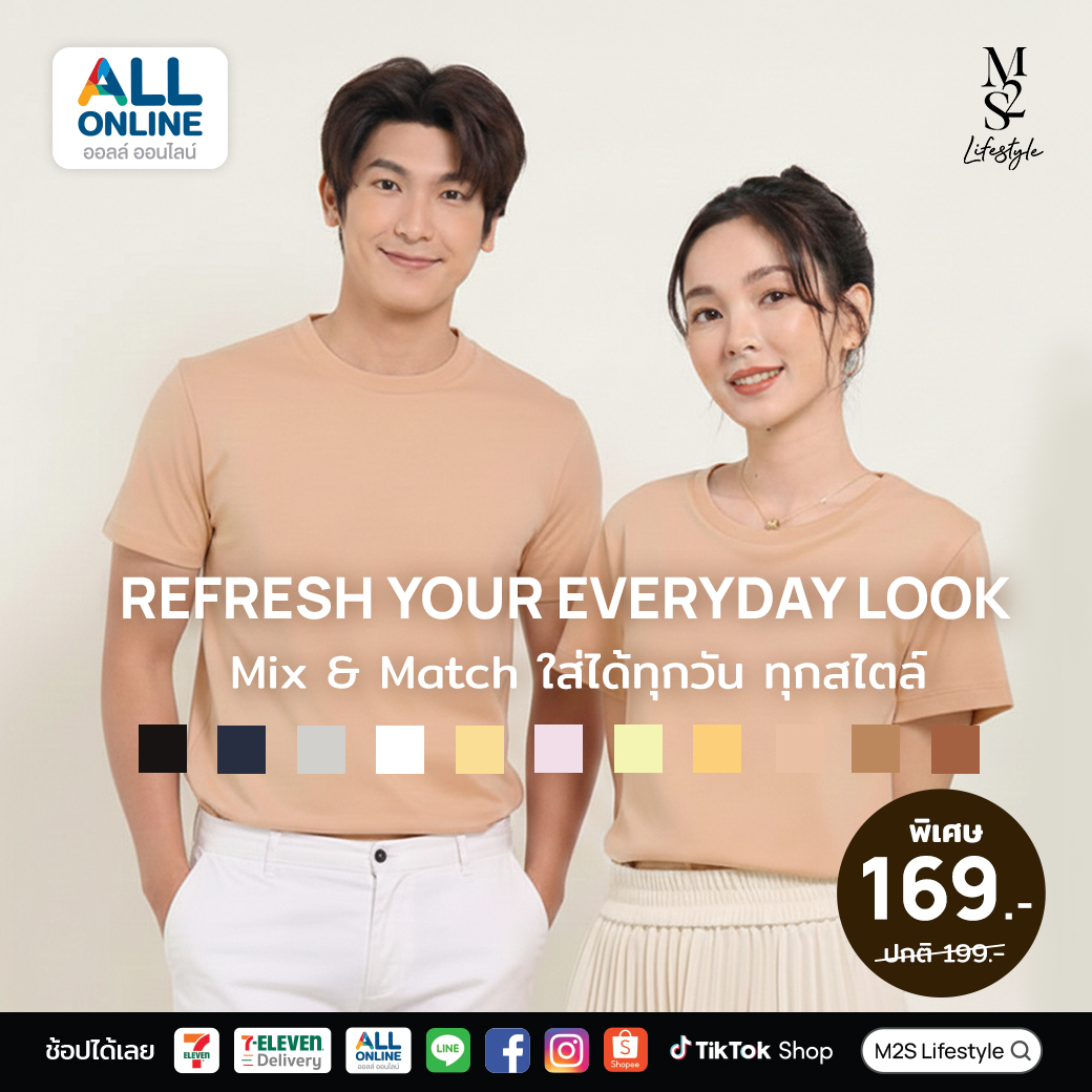 ยุคนี้จะช้อปของดีไม่จำเป็นต้องออกจากบ้านไปฝ่ารถติดหรือเบียดเสียดกับผู้คนให้เหนื่อย เพราะคุณสามารถเป็นเจ้าของ เสื้อยืด M2S Lifestyle ได้ง่ายๆ ผ่านช่องทางออนไลน์ที่เชื่อถือได้อย่าง ALL ONLINE ได้ทั้งผ้านหน้าเว็บไซต์และแอปพลิเคชัน