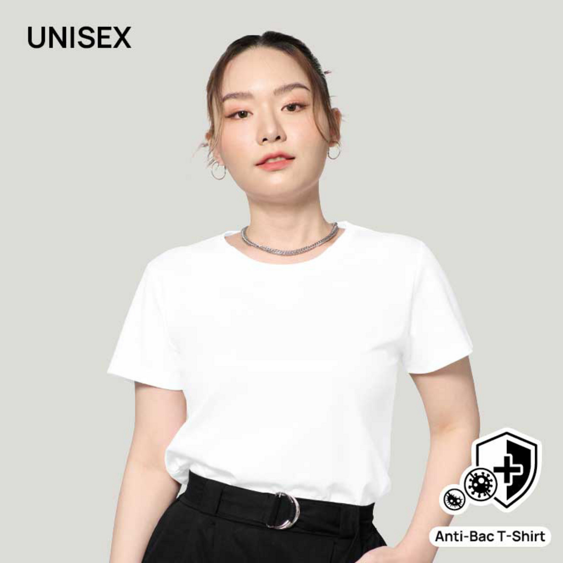 M2S Lifestyle เสื้อยืดคอกลม Antibac Unisex สีขาว