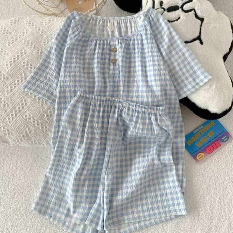 ชุดนอนใส่สบายที่เห็นแล้วอยากพักผ่อนทันที ดีไซน์ลายตารางสีฟ้าให้ฟีลน่ารัก สดใส เนื้อผ้านุ่ม ใส่สบาย ระบายอากาศได้ดี เหมาะกับการนอนหรือใส่อยู่บ้านยาวๆ เป็นอีกหนึ่งไอเทมที่เหมาะทั้งซื้อใช้เองและซื้อเป็นของขวัญช่วงปีใหม่