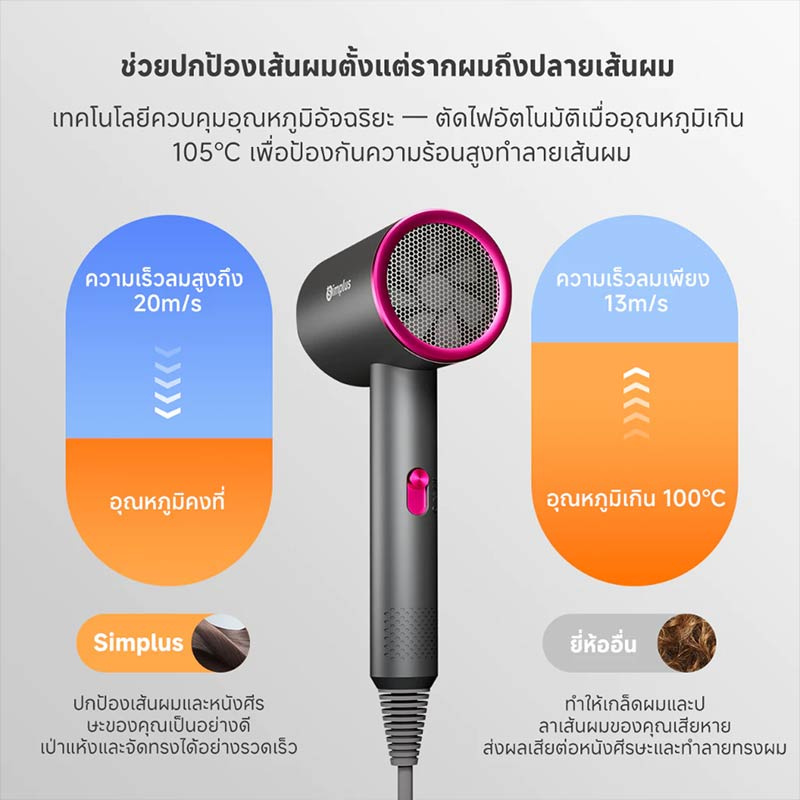 Simplus ไดร์เป่าผม รุ่นนี้เหมาะสำหรับทุกคนที่ต้องการความสะดวกสบายและประสิทธิภาพในการเป่าผม ไม่ว่าจะเป็นคนทำงานที่มีเวลาจำกัด ต้องการผมแห้งเร็วทันใจ นักเรียนนักศึกษา หรือแม่บ้านที่ต้องการดูแลเส้นผมให้สวยงามและสุขภาพดีในทุกๆ วัน เป็นทางเลือกที่ยอดเยี่ยมสำหรับผู้ที่ให้ความสำคัญกับการถนอมเส้นผมและต้องการอุปกรณ์ที่ใช้งานง่าย พกพาสะดวก