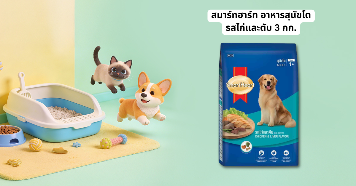 ชวนน้องหมาฟินกับมื้ออร่อยสุดพิเศษ! สมาร์ทฮาร์ท อาหารสุนัขโต รสไก่และตับ 3 กก. ให้ทุกวันคือวันแห่งความสุข!