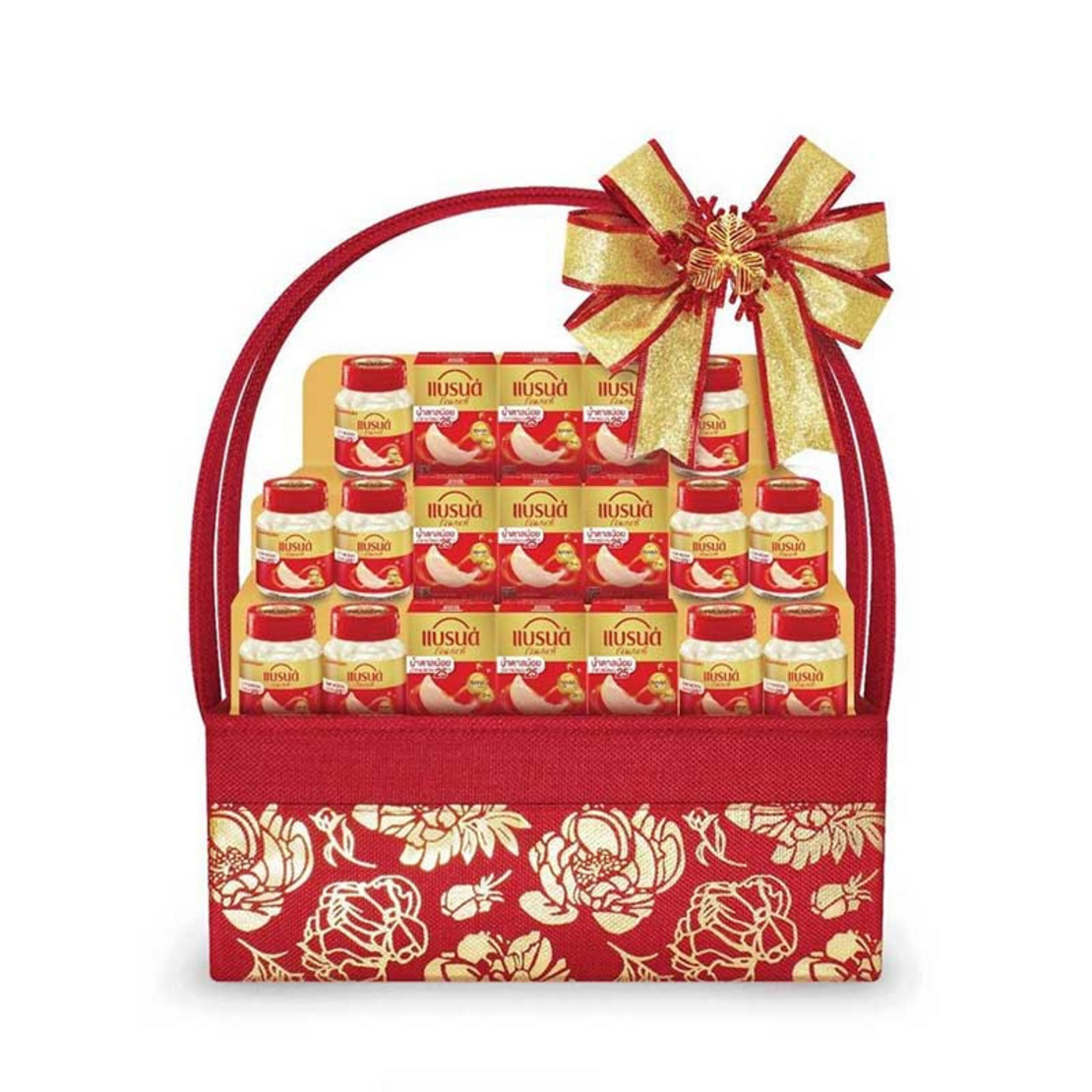 อีกหนึ่งรูปแบบยอดนิยมในปีนี้ มากับตะกร้าผ้าดีไซน์หรู ใช้งานได้จริงหลังรับของขวัญ ภายในอัดแน่นด้วยผลิตภัณฑ์แบรนด์คุณภาพ บรรจุแบรนด์รังนกน้ำตาลน้อย 42 มล. 10 ขวด เหมาะสำหรับผู้รับที่ใส่ใจสุขภาพและคุมความหวาน