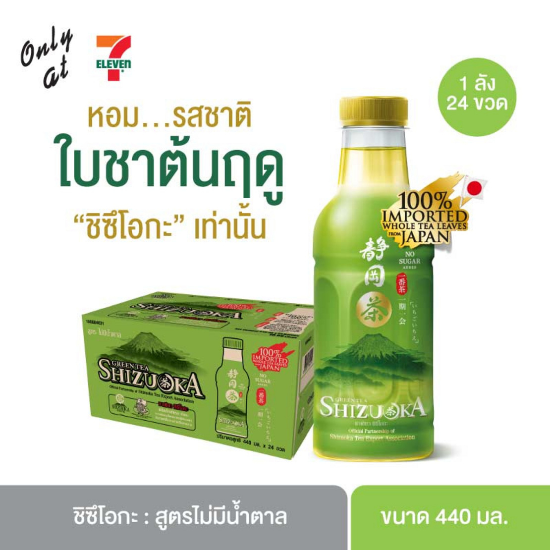 ชิซึโอกะ ชาเขียว สูตรไม่มีน้ำตาล 440 มล. (ยกลัง 24 ขวด)