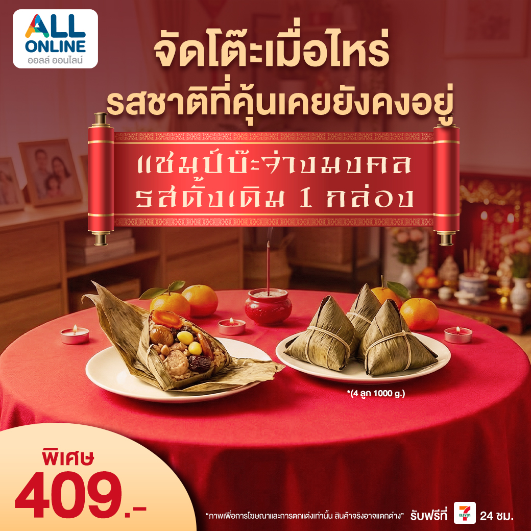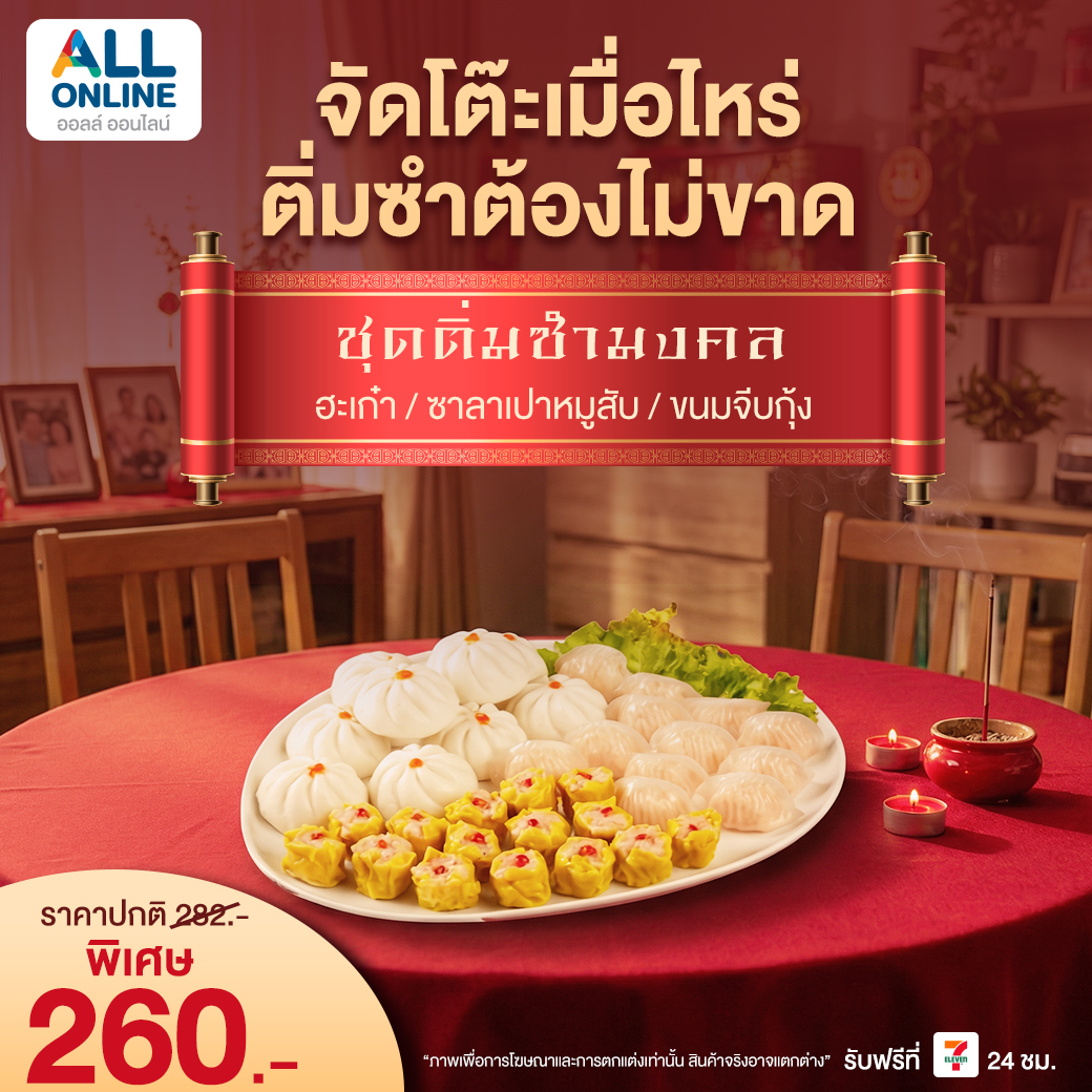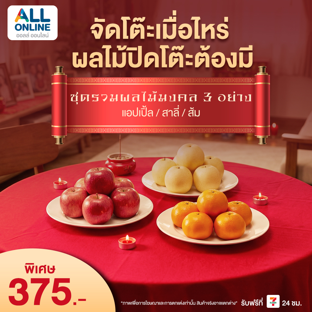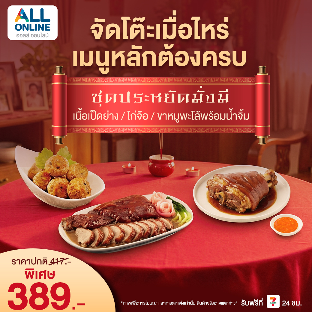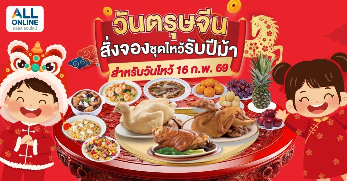 ตรุษจีน 2569 กำลังจะมาถึงแล้ว 🎊 เทศกาลสำคัญที่ชาวไทยเชื้อสายจีนและครอบครัวให้ความสำคัญกับการไหว้เจ้า ไหว้บรรพบุรุษ และเสริมความเป็นสิริมงคลให้กับชีวิต ใครที่กำลังมองหา ชุดไหว้ตรุษจีน 2569 ที่ครบ สะดวก และได้ของมงคลคุณภาพดี ต้องไม่พลาดการสั่งจอง ชุดไหว้ตรุษจีนจาก ALL ONLINE ที่คัดสรรมาให้พร้อมไหว้ ส่งฟรีรับสินค้าที่ 7-Eleven ใกล้บ้านคุณ