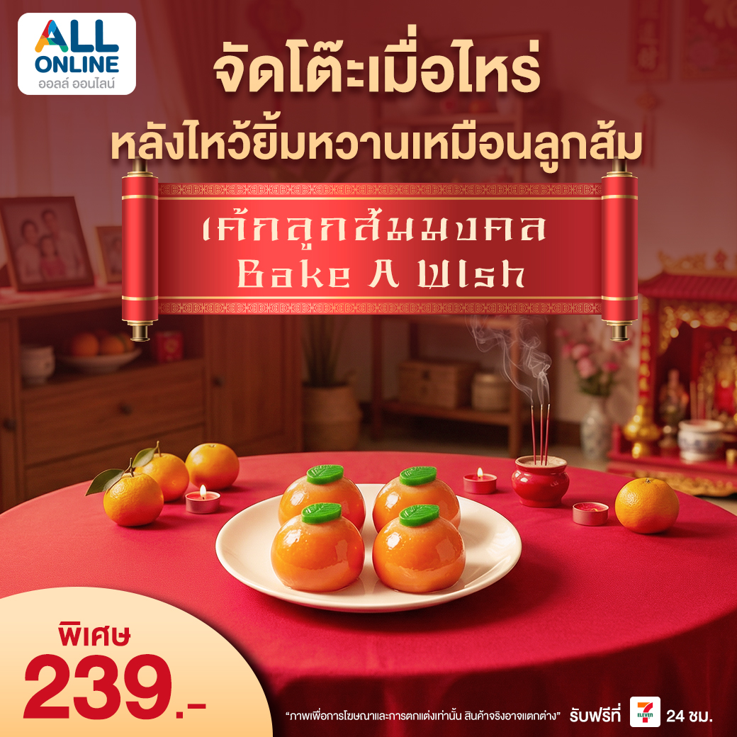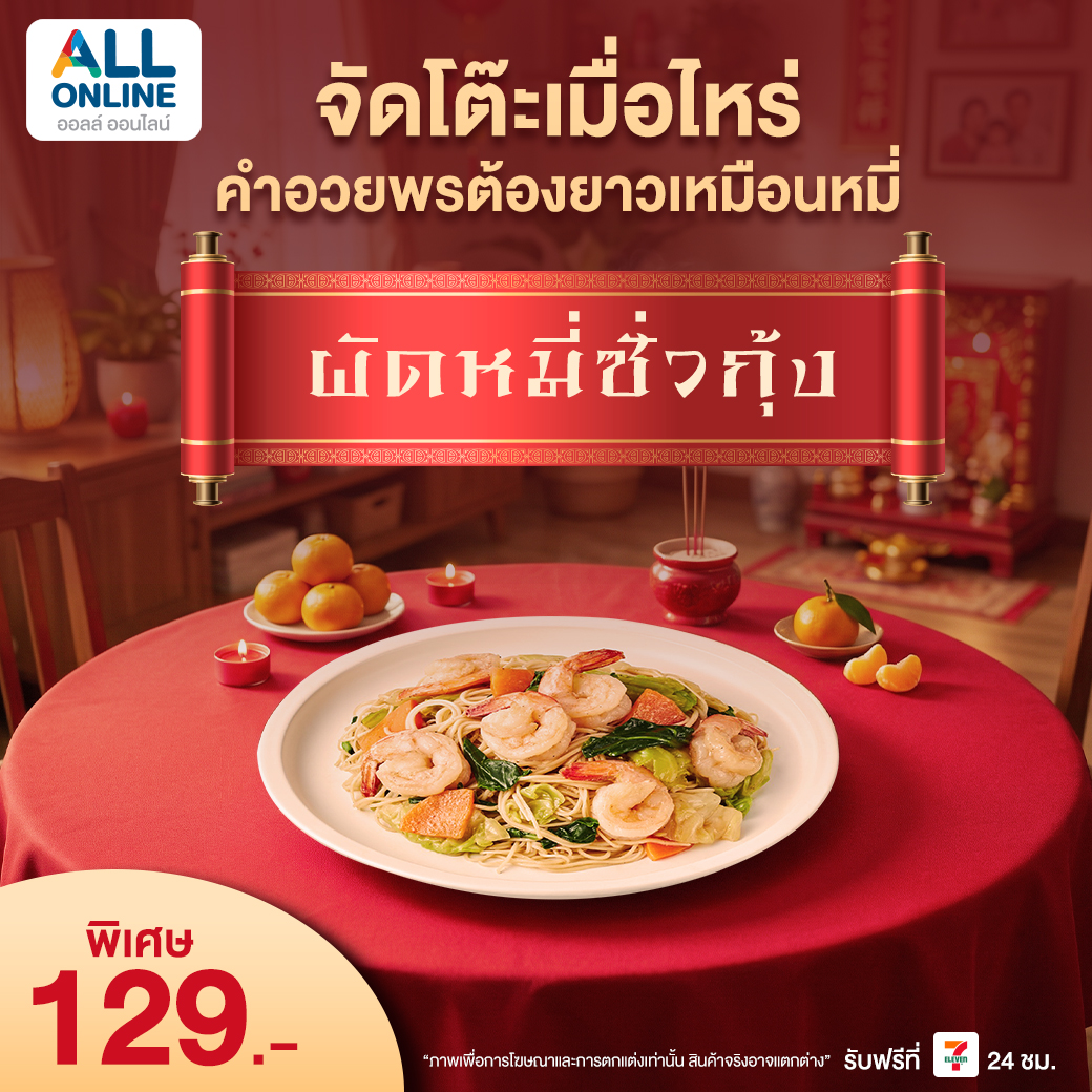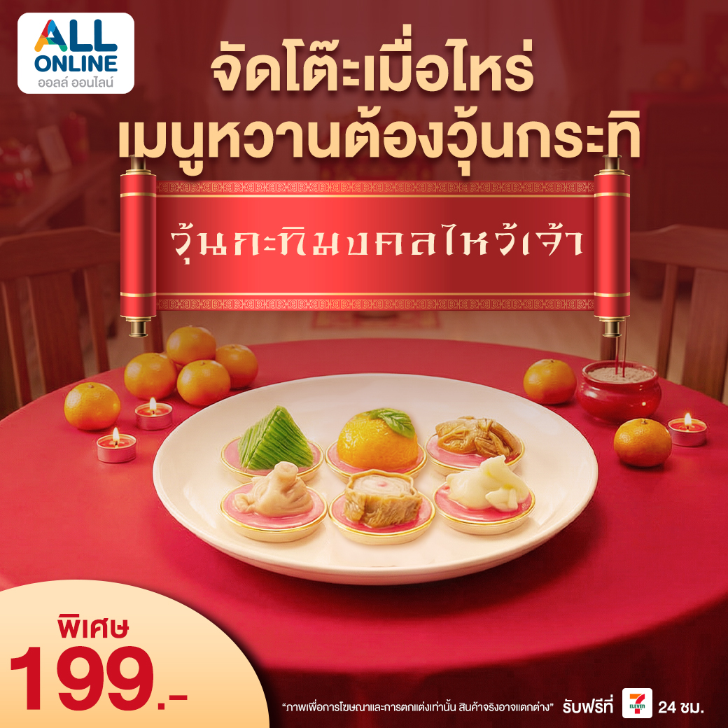 สั่งจองชุดไหว้ตรุษจีน 2569 ได้ผ่านเว็บไซต์และแอปพลิเคชัน ALL ONLINE เลือกรับสินค้าที่ร้าน 7-Eleven ใกล้บ้าน เตรียมตัวล่วงหน้า เลือกของไหว้ให้ครบ พร้อมต้อนรับ ตรุษจีน 2569 อย่างสบายใจ เสริมสิริมงคลให้ทั้งครอบครัวตลอดปี