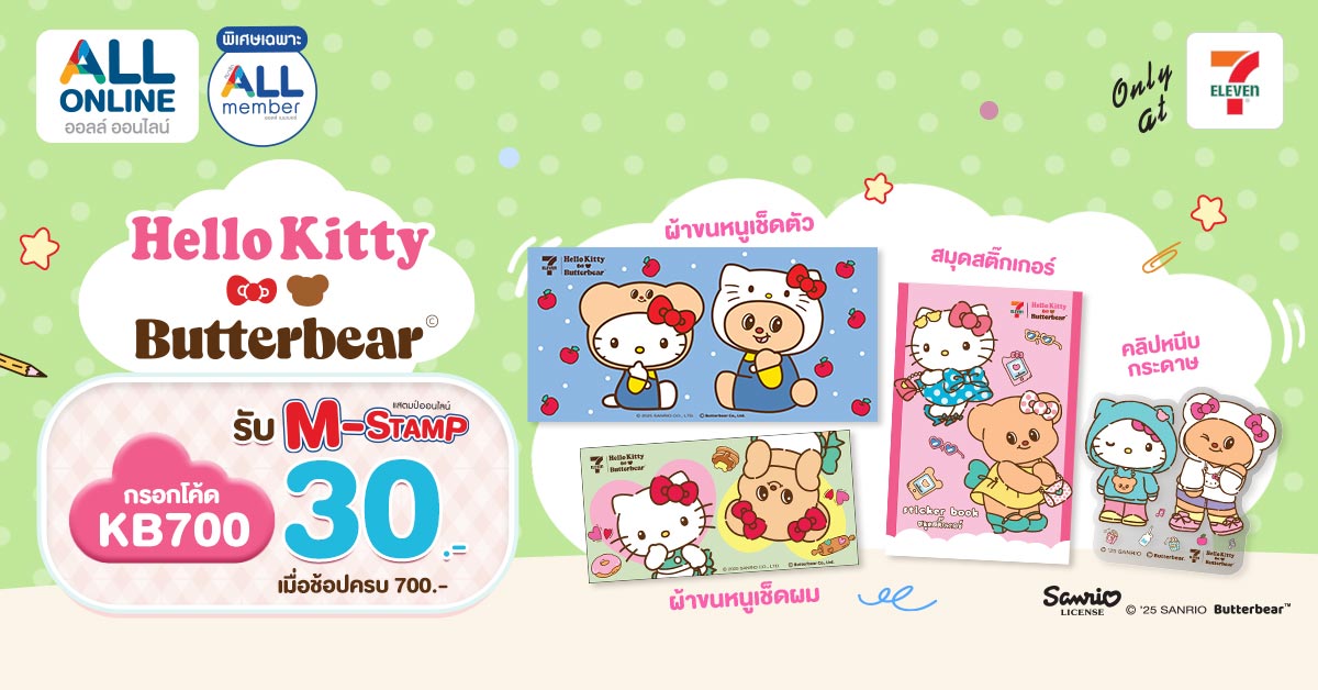 มัมหมีไม่ต้องวิ่งหาตามร้านให้เหนื่อย เพราะสามารถ พรีออเดอร์ Hello Kitty x Butterbear ได้แล้วที่ ALL ONLINE เท่านั้น บอกเลยว่าของมีจำนวนจำกัดนะ ใครช้าอาจพลาดความน่ารักนี้ไป