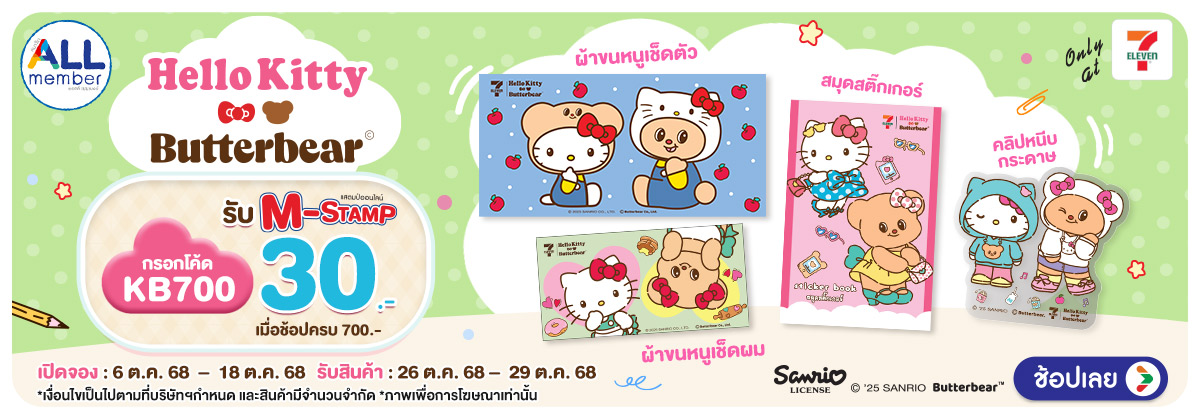 ลองจินตนาการถึงตอนที่คุณหยิบผ้าเช็ดตัวลาย Hello Kitty x Butterbear หลังอาบน้ำ หรือเปิดสมุดแล้วเจอสติกเกอร์น่ารักๆ โอ๊ย…แค่คิดก็ยิ้มแก้มปริแล้วใช่มั้ยคะ? นี่แหละคือเสน่ห์ของคอลเลกชันนี้ ที่ไม่ได้มาแค่ความน่ารัก แต่ยังเป็นไอเท็มที่ใช้งานได้จริง ใช้ได้ทุกวัน ไม่มีวันเบื่อ