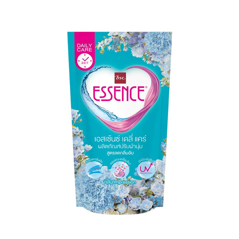 เอสเซ้นซ์ ปรับผ้านุ่มยูวี สูตรลดกลิ่นอับ สีฟ้า กลิ่น อิมเพรสชั่น ที่ออกแบบมาเพื่อช่วยลดปัญหากลิ่นอับของเสื้อผ้า