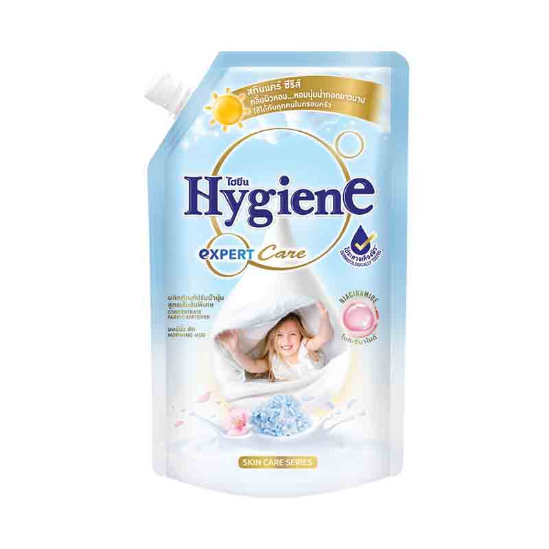 ไฮยีน เอ็กซ์เพิร์ท แคร์ น้ำยาปรับผ้านุ่ม กลิ่น มอร์นิ่ง ฮัก ที่ให้กลิ่นหอมละมุน ช่วยให้เสื้อผ้ามีกลิ่นสะอาดนุ่มนวล