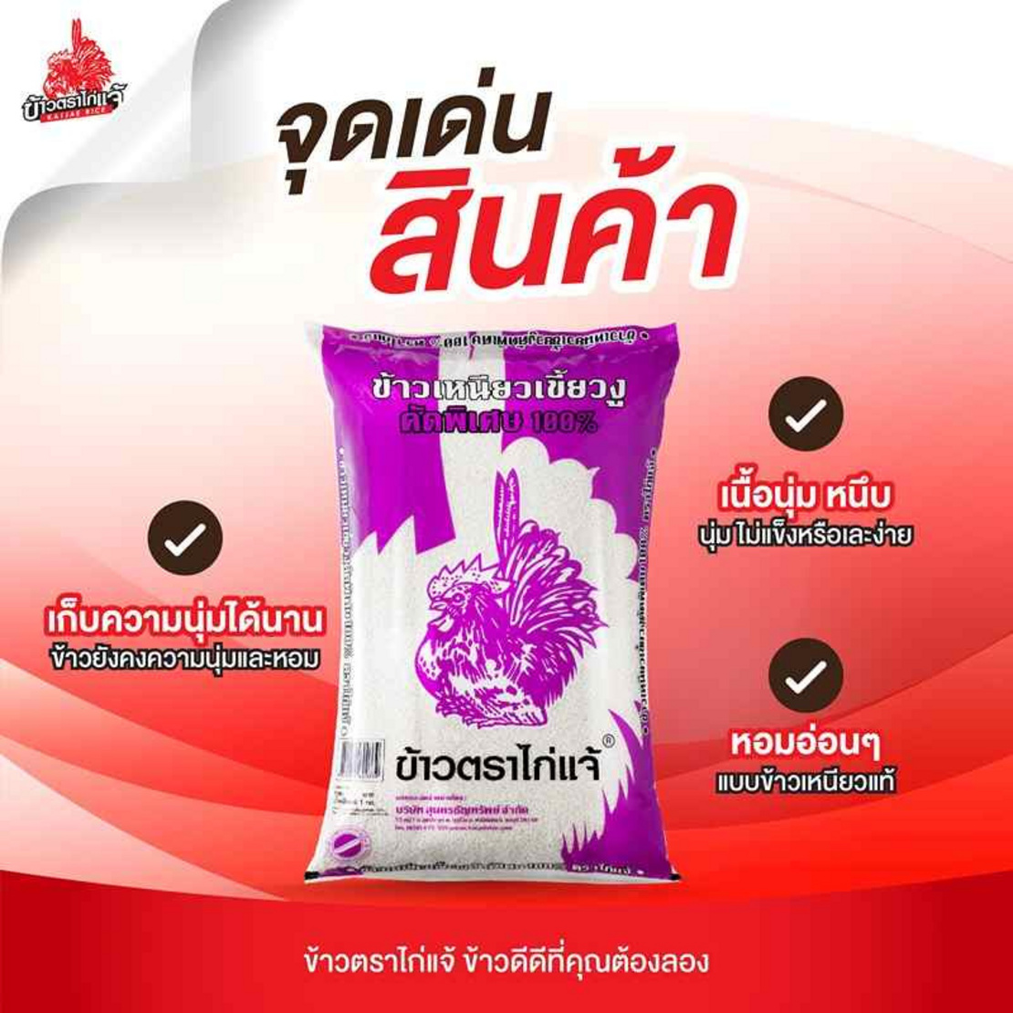 ไก่แจ้ ข้าวเหนียวเขี้ยวงูคัดพิเศษ 100% 1 กิโลกรัม
