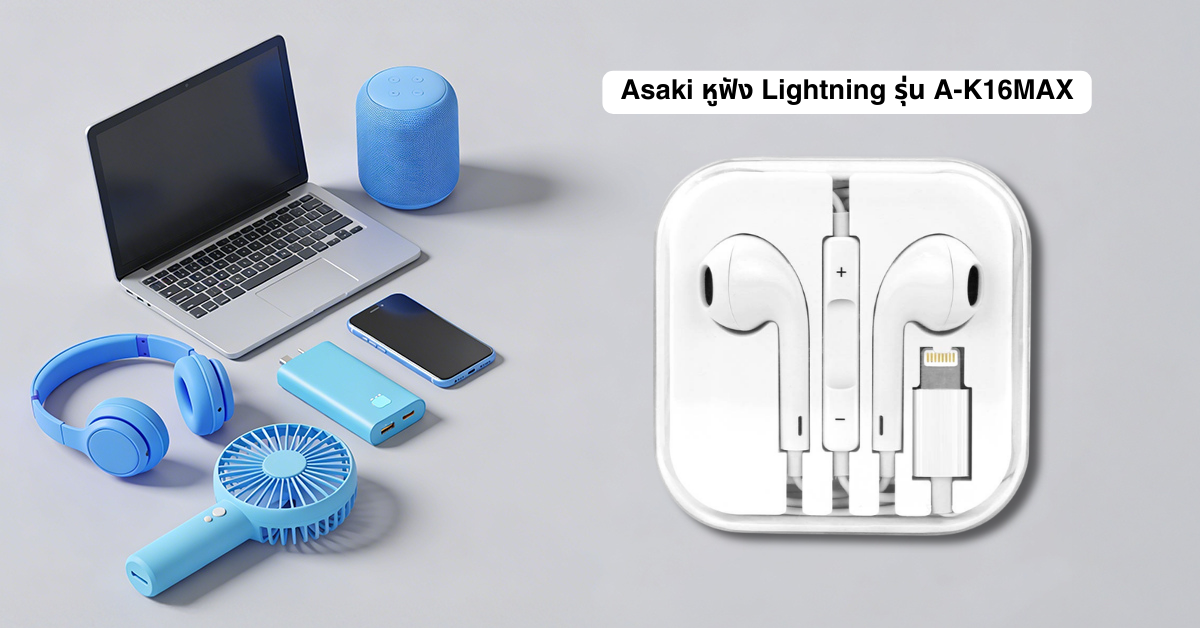 Asaki หูฟัง Lightning A-K16MAX เสียงคมชัด เบสแน่น ทนทาน iPhone/iPad
